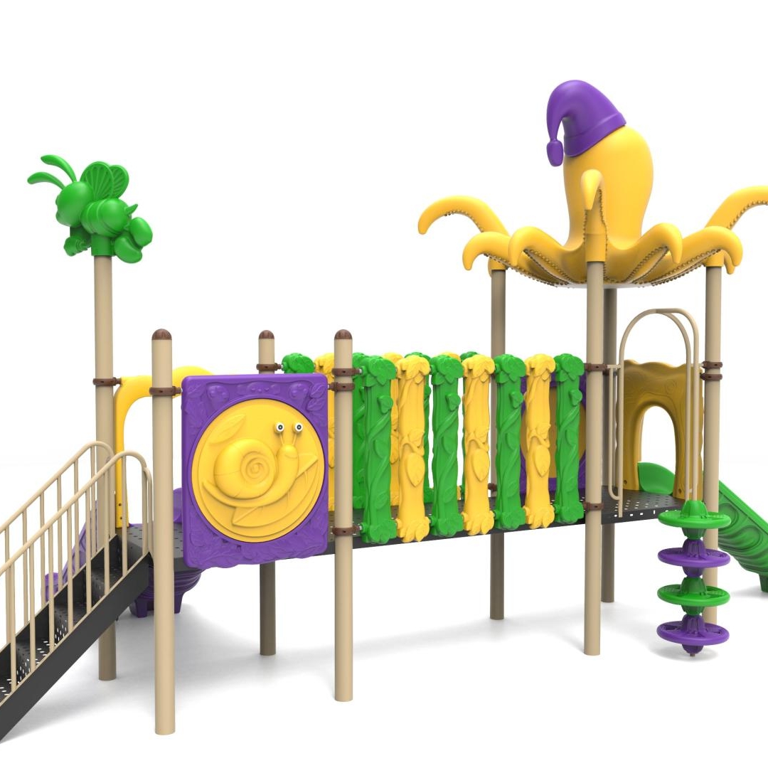 Mini Serisi 3, ahtapot şapkasıyla dikkat çeken renkli tasarımı ve geçiş köprüsüyle çocuklara hem fiziksel aktivite hem de eğlence sunar. Mor-sarı-yeşil renk geçişleriyle doğaya uyum sağlar. UV dayanımlı ve güvenli malzeme kullanılmıştır. Parklar, okul bahçeleri ve siteler için uygundur. Çiftli kaydırak ve spiral çıkış bölümüyle çeşitlilik sağlar.