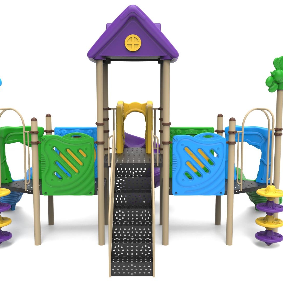 KLASİK Serisi 3, dört ayrı kaydıraklı yapısıyla yüksek kapasite ve eğlenceyi bir araya getiriyor. Spiral ve düz kaydıraklar, çocukların farklı oyun deneyimlerini keşfetmesine olanak tanırken; figürlü paneller görsel zenginlik ve tematik bütünlük sağlar. Park ve okul bahçeleri için ideal olan bu model, aynı anda birçok çocuğun oynayabileceği geniş bir alan sunar. Hem dayanıklı malzeme yapısı hem de güvenli tasarımıyla öne çıkar.